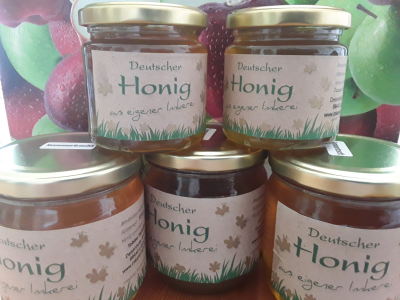Beerensträuchern (Brombeer, Himbeer), Kräutern und in manchen Jahren auch Honig vom Blatttau.